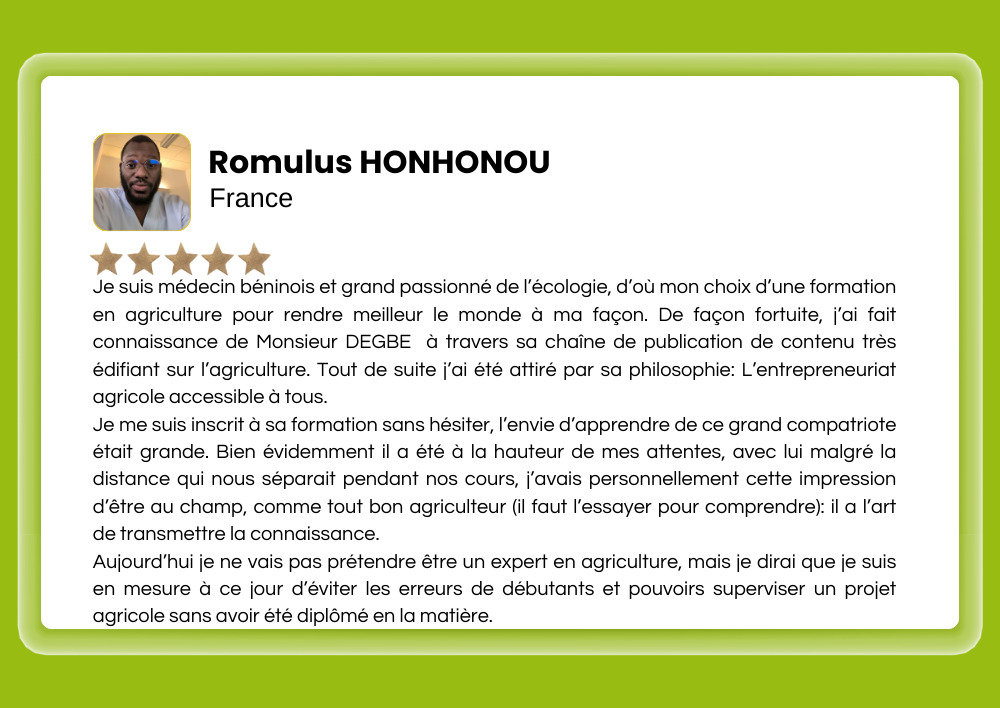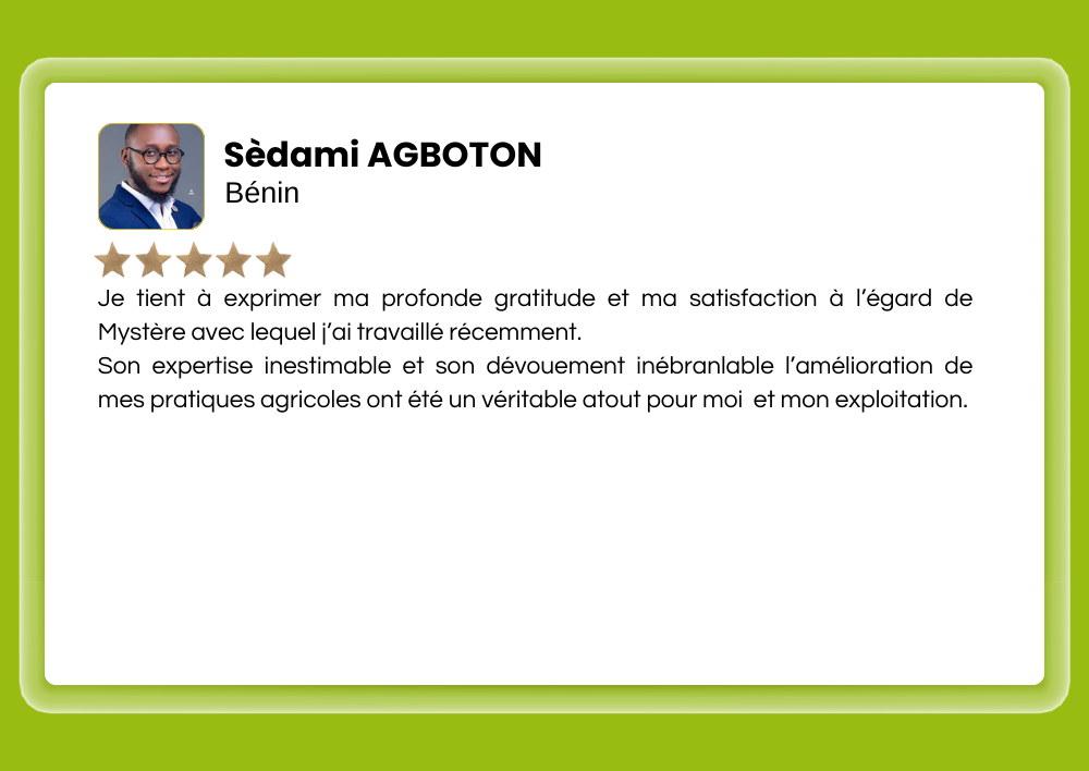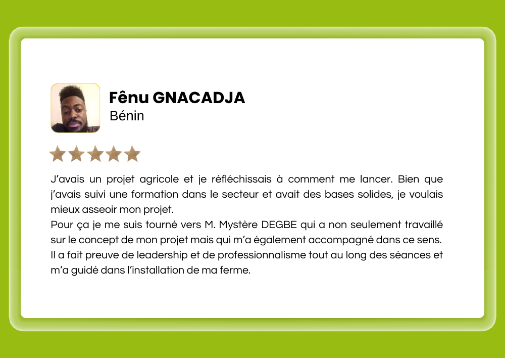 Nous ne nous contentons pas de vous enseigner, nous vous soutenons tout au long de la mise en œuvre de vos projets agricoles.